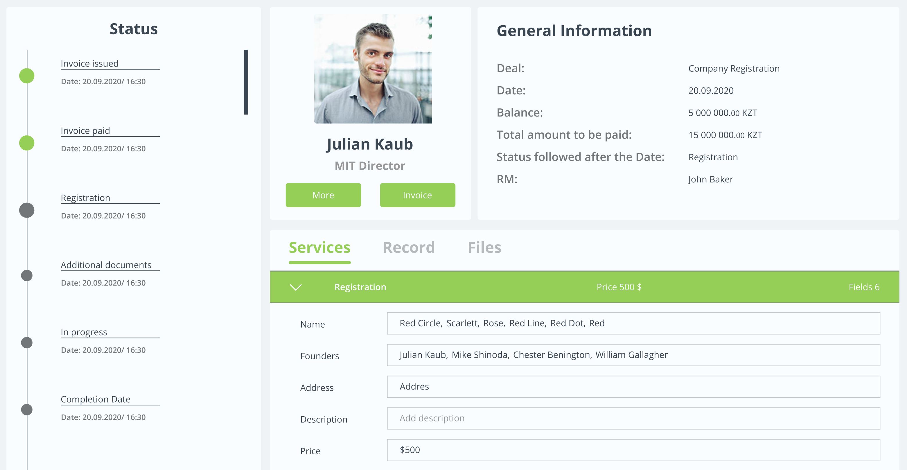 ZOOMIA для консалтинговых компаний в ОАЭ— идеальное облочное решение для компаний, предоставляющих услуги своим клиентам в сфере регистрации и управления бизнесами для своих клиентов. Решение позволяет создать собственный каталог услуг, с определенными этапами, которые можно наполнить необходимыми данными о сделке. Также система позволяет формировать счета на оплату и коммерческие предложения для конкретного клиента по конкретной услуге. Функциональный модуль финансового учета даст четкую картину движения денежных средств и сформирует баланс клиента. Это решение идеально вписывается в компанию, сколько бы ей ни было лет!